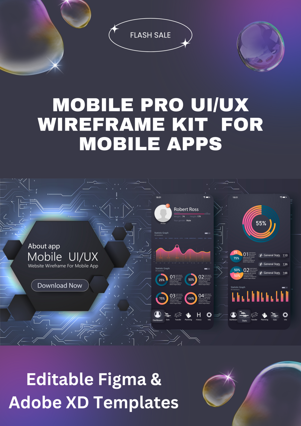 "Mobile Magic: Pro UI/UX Wireframe Kit for Mobile Apps – Editable Figma & Adobe XD Templates"